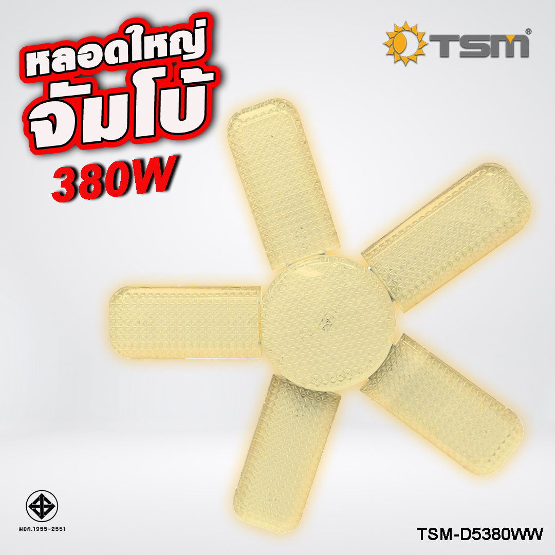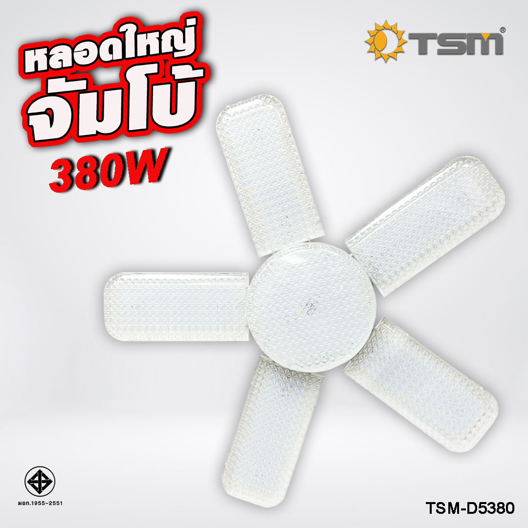 จัมโบ้!! หลอดไฟใบพัด 5+1 LED เยอะกว่า 2 เท่า ขนาด 380W แสงขาว สว่างจ้า ขั้วเกลียวมาตรฐาน E27